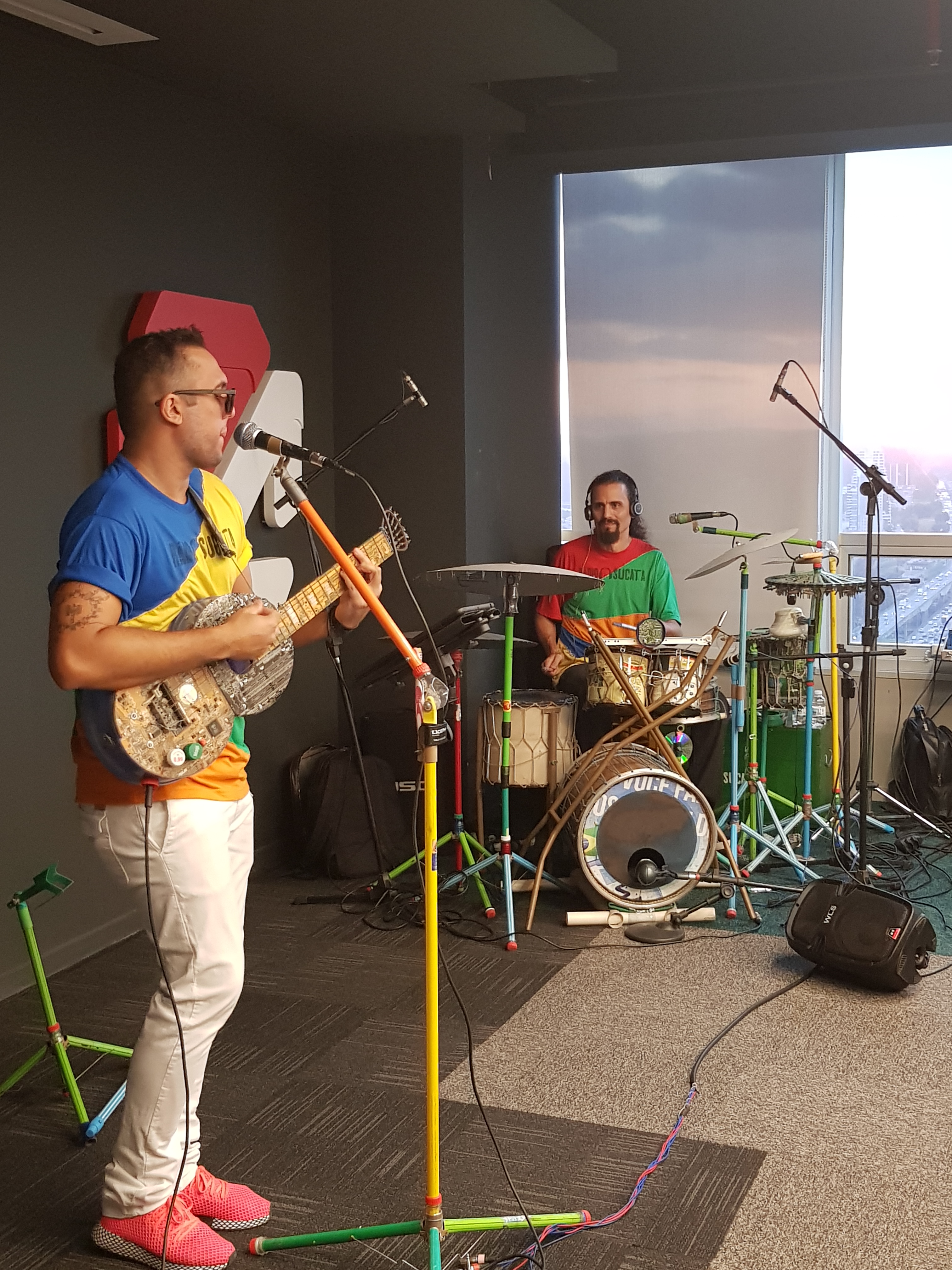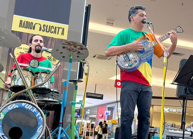Compacto Duplo é um show de músicas tocadas com apenas dois instrumentos: bateria e violão, ambos feitos de materiais típicos de descarte, que formam a base das canções.